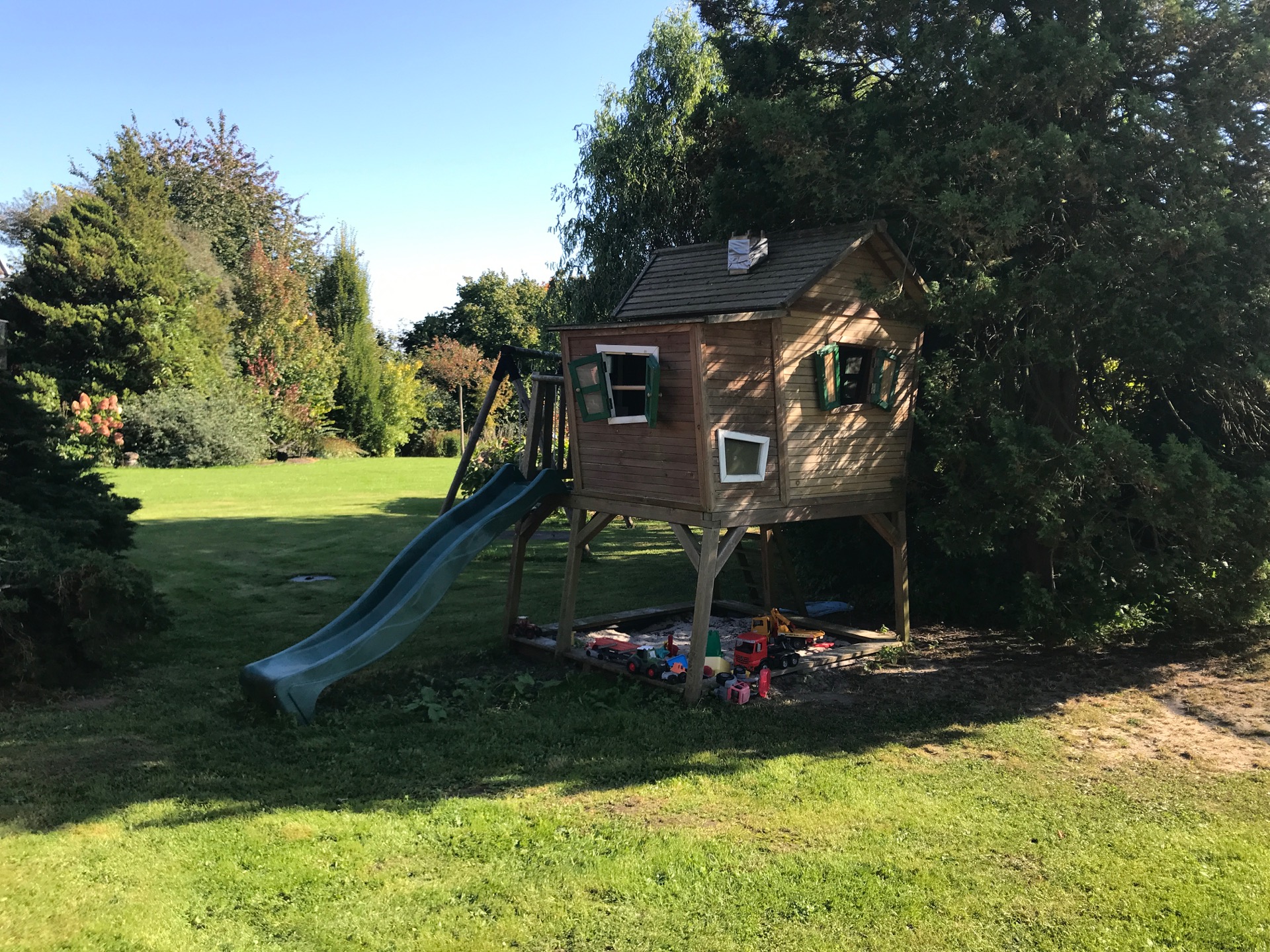 Ve velké zahradě obklopené ovocným sadem a pastvinami naleznete ohniště s příjemným posezením, dětský domeček s pískovištěm, houpačky, trampolínu, ping-pongový stůl a v teplejších měsících i vyhřívaný bazén.